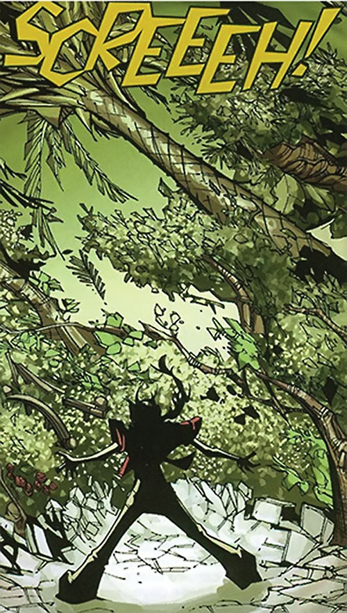 Le héros peut utiliser son Contrôle des Plantes en place de sa Force pour réduire les dégâts d’une attaque. Il est considéré comme ayant les compétences lutte et L’Art de l’Évasion. |